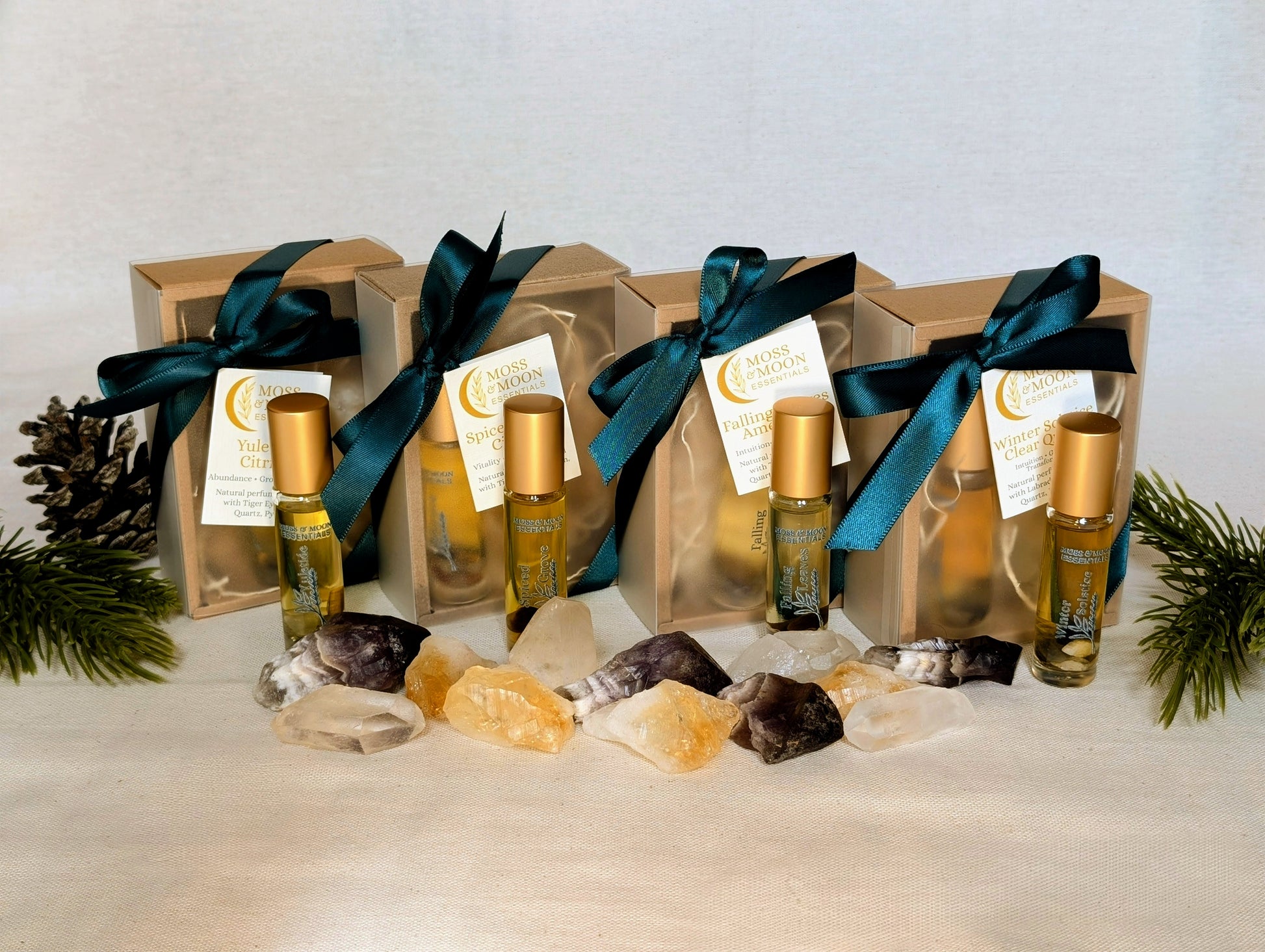 The Moss & Moon Essentials Gift Box is designed to sell quickly and easily. Each box pairs a crystal-infused essential oil roll-on perfume with a matching crystal, beautifully packaged and shelf-ready. It’s the kind of gift customers grab without hesitation - meaningful, natural, and already wrapped.